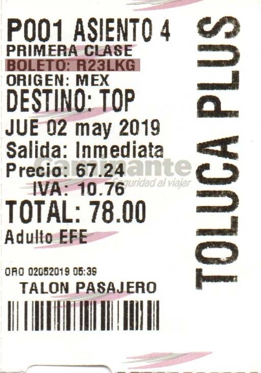 | SANTA FE - TOLUCA | $90 |